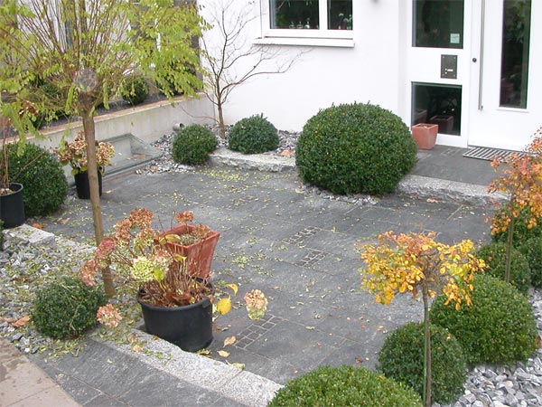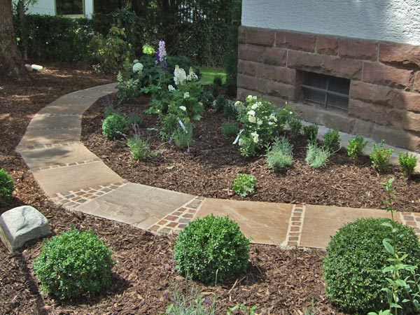 Die Materialien lassen sich individuell und ganz nach Ihren Wünschen zusammenstellen. Polygonale Natursteinplatten oder Betonsteinpflaster mit Natursteinbändern sowie Holzterrassen gehören hier zu unseren Stärken.
